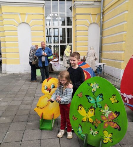 Храмовая икона с изображением Свтт. Филарета и Феодосия (в середине храм Вознесения Господня) с частицами их святых мощей.